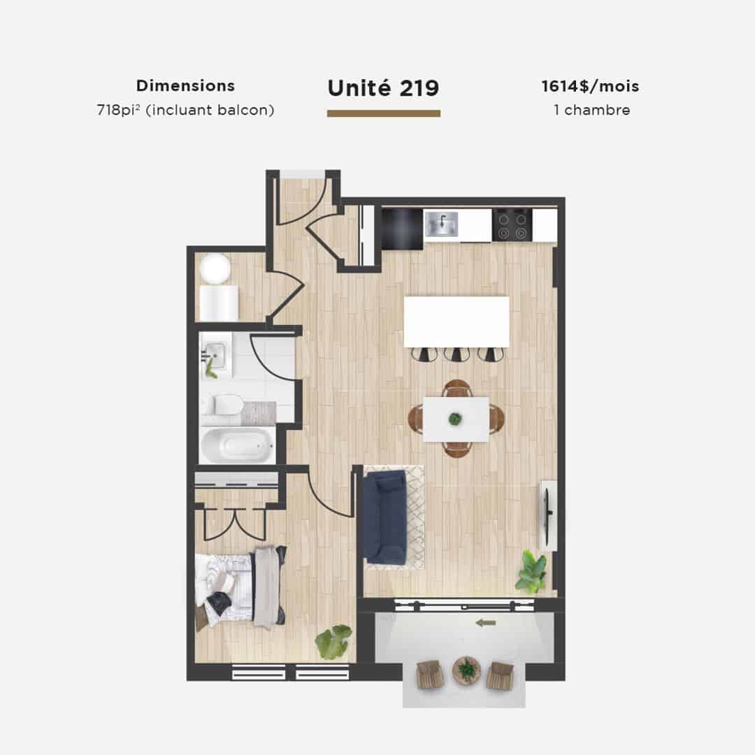 Bienvenue à l’unité 219 du British Square, une suite magnifiquement conçue avec un salon, une salle à manger et une cuisine spacieux et ouverts, parfaits pour se détendre ou recevoir. Le balcon privé offre une vue paisible sur la rivière, orientée au sud, sans qu’aucun climatiseur ne vienne obstruer l’espace ou le paysage. La salle de bains comprend une baignoire complète, offrant un endroit confortable pour se détendre.