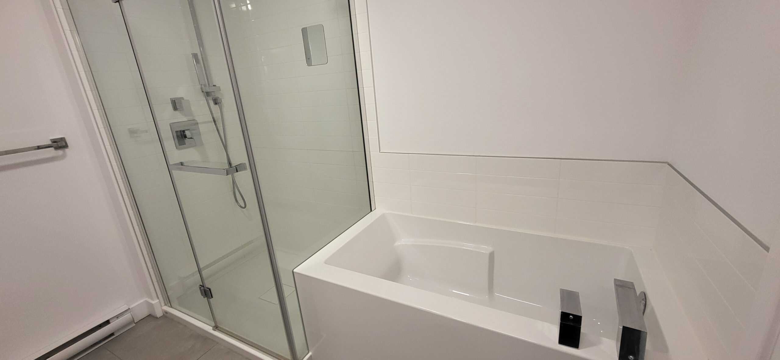 Unit 317 at The British Square offers a well-appointed bathroom with a convenient side-by-side tub and shower. This west-facing unit boasts beautiful river views and stunning sunset vistas, filling the space with warm natural light in the evenings.